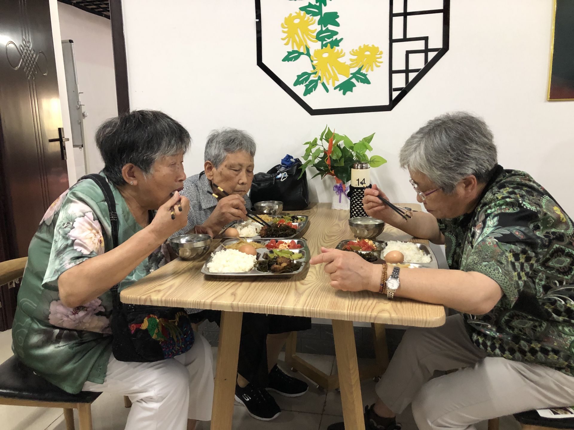记者看了看,今天的4个菜是海带烧肉、芹菜炒肉丝、西红柿炒鸡蛋和清炒土豆丝,主食是米饭,汤是虾皮冬瓜蛋花汤。