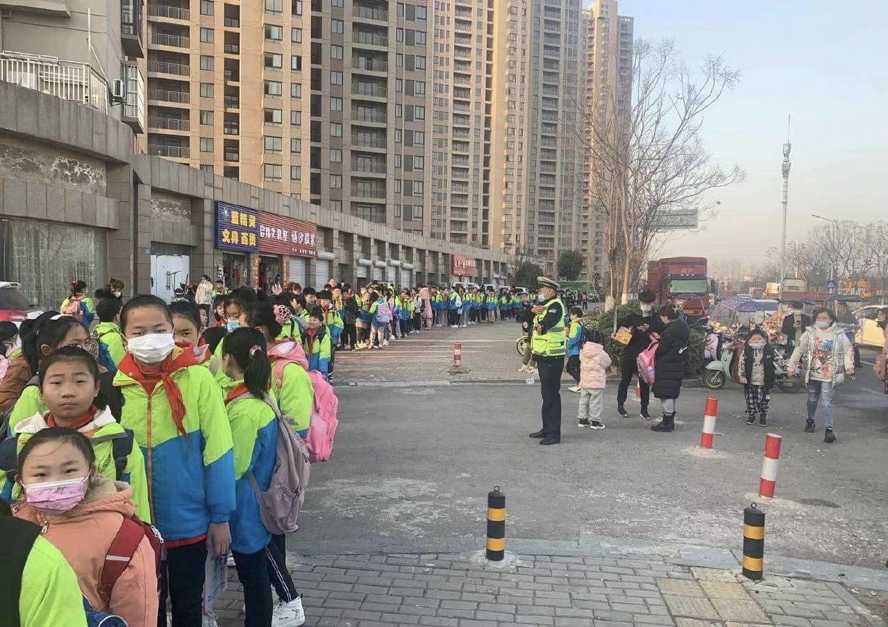 当天早晨,蚌埠交警支队的民辅警们来到了学校门前的“助学岗”上,指挥、疏导校门口乱停乱放和接送学生的车辆,对过往车辆进行管控和分流,劝导不文明交通行为,维护校园周边秩序,保证道路安全畅通、行车有序。