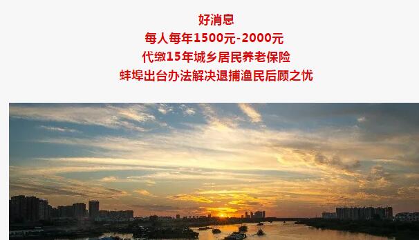 昨天上午,市人社局农保科负责人介绍,为了加强禁捕工作和退捕渔民安置保障,我市此前出台了《蚌埠市进一步加强淮河流域重点水域禁捕和退捕渔民安置保障工作实施方案》,明确禁捕水域,将退捕渔民纳入城乡居民基本养老保险范围,享受政府代缴养老保险费政策。