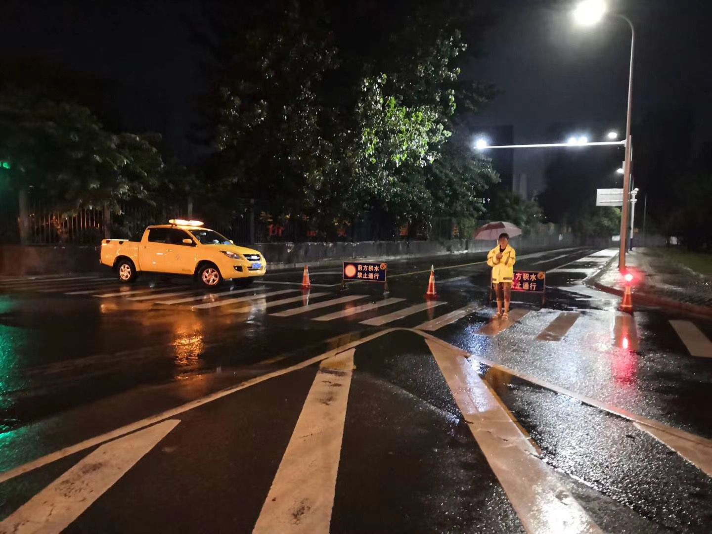 市政部门连夜组织人员对积水路段进行排涝