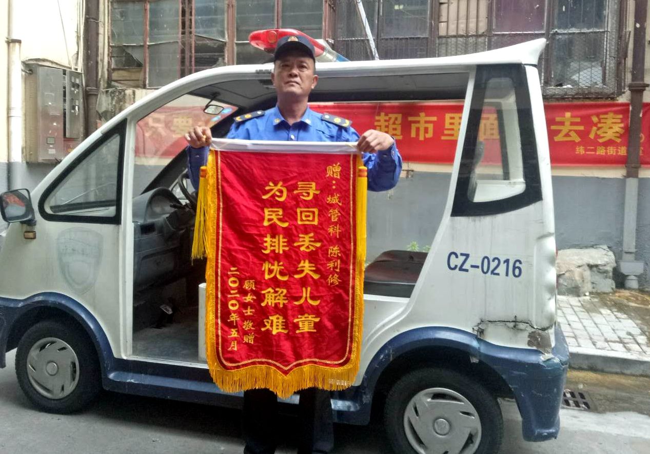 近日,蚌山区纬二路街道收到市民顾女士送来的一面锦旗,感谢街道城管队员陈利修帮助她找回了走失的孩子。