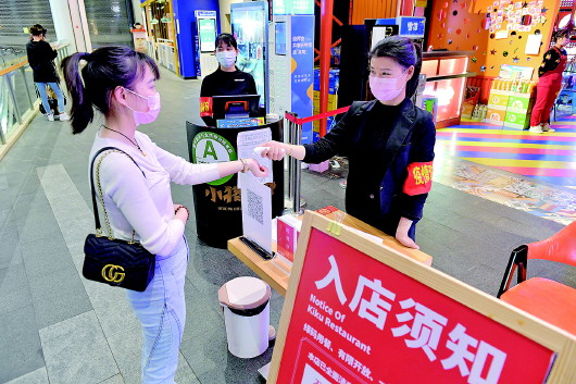 ⑥3月25日,蚌埠银泰城,小顾客进店前按要求洗手消毒。
