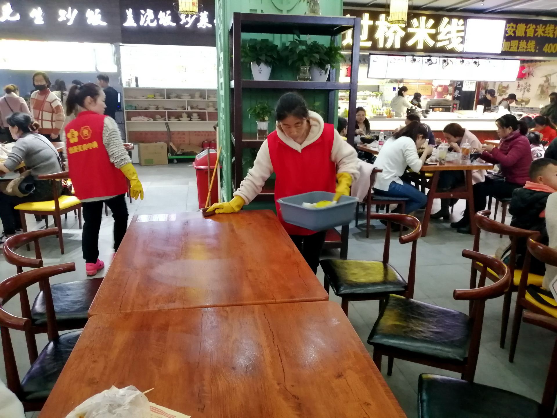 原来,这家美食城里的16名服务员全部都是聋哑人,他们负责收拾餐桌和给楼内商户送外卖。