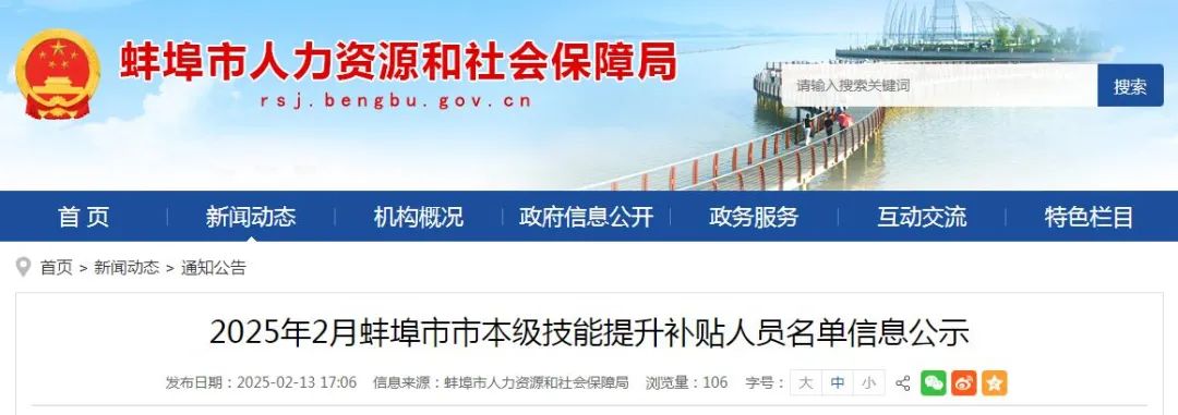 蚌埠市人社局公示