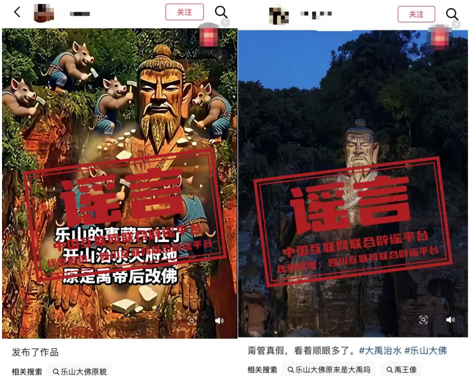 辟谣“乐山大佛是大禹雕像改建”系AI动画生成
