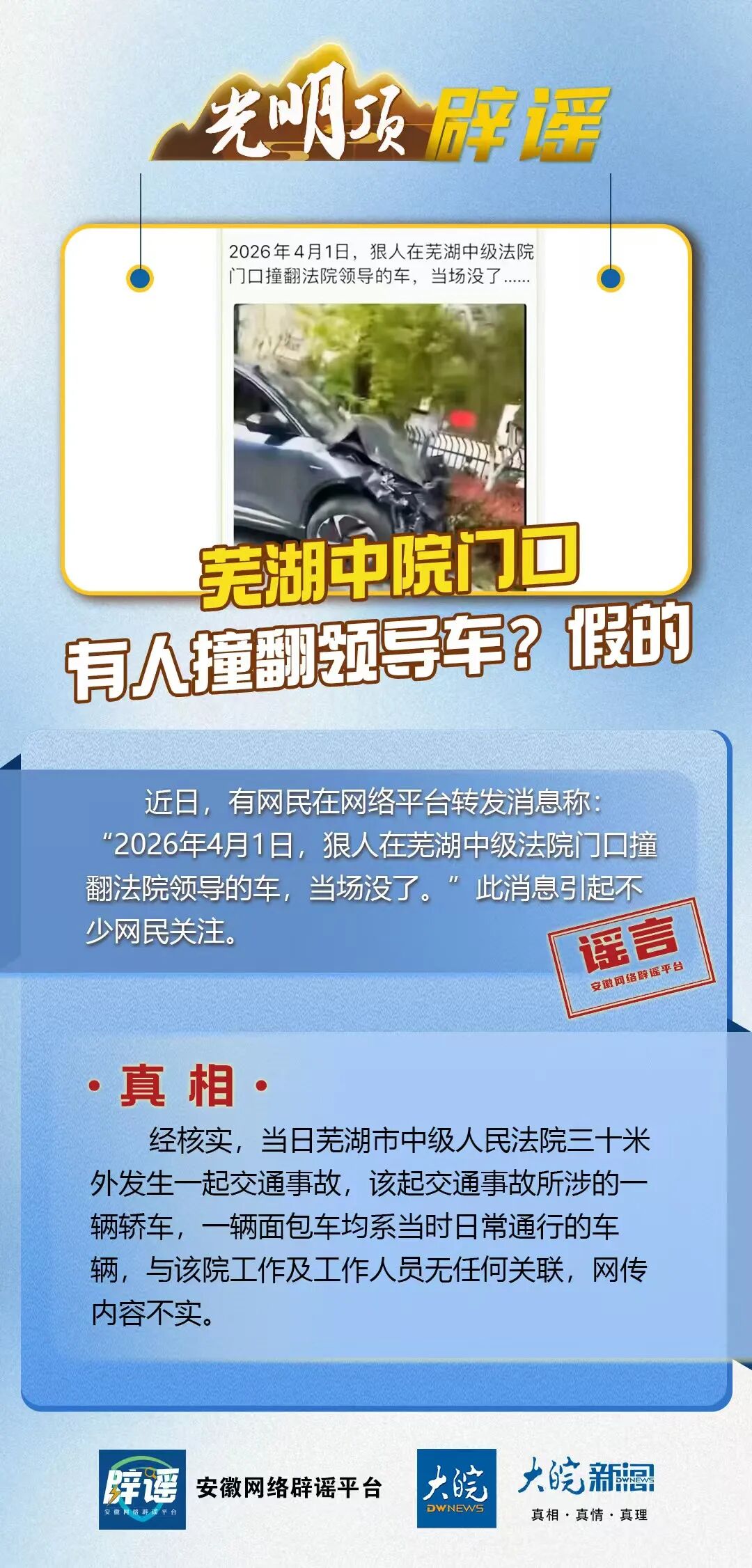 芜湖中院门口有人撞翻领导车?假的