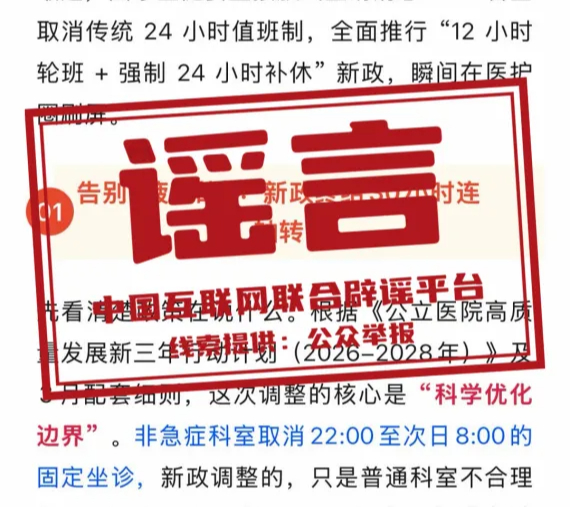“5月1日起医院取消24小时值班”不实(2026·04·23)