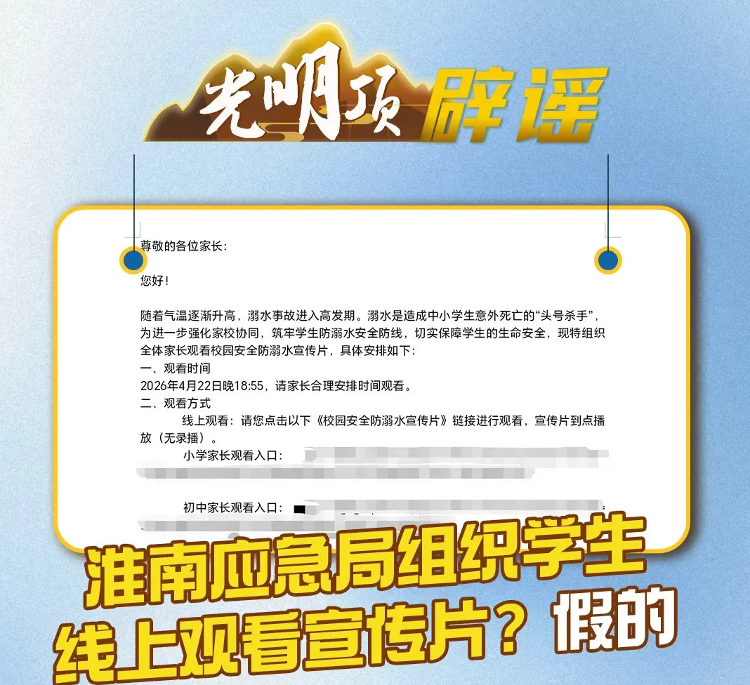 光明顶辟谣 | 淮南应急局组织学生线上观看宣传片?假的