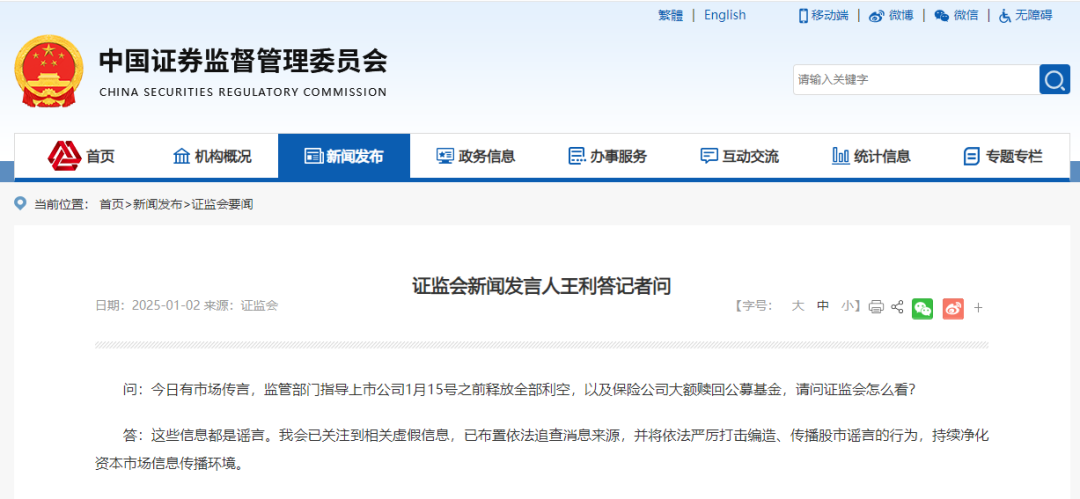 证监会辟谣!