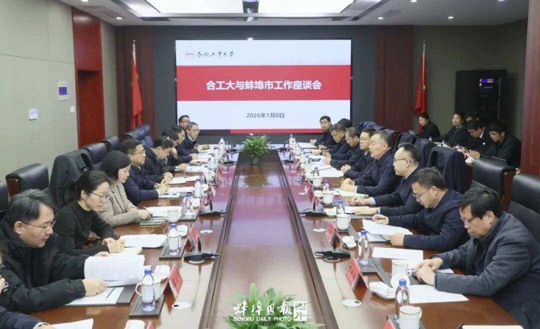 在随后召开的蚌埠•合肥工业大学合作座谈会上,市校双方围绕共建工大智谷蚌埠产业研究院等进行深入交流,达成系列合作共识。