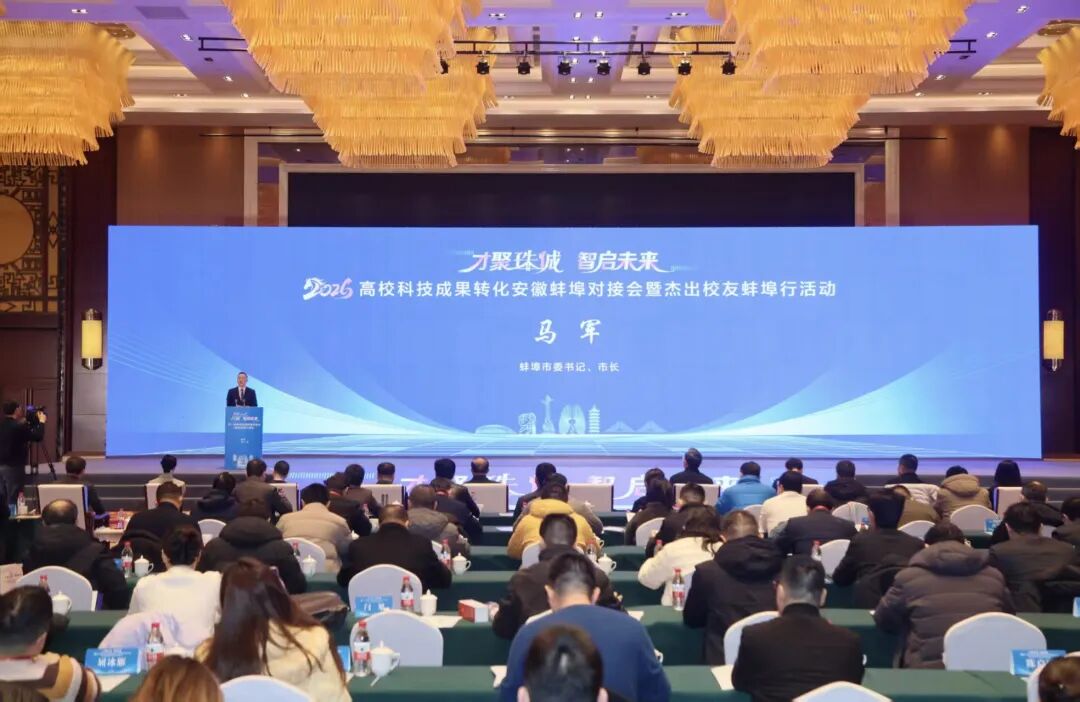 蚌埠发布客户端讯(蚌埠市新闻传媒中心记者 顾楷 尤靖文 陈昂 文/图)才聚珠城,智启未来。1月10日至11日,2026高校科技成果转化安徽蚌埠对接会暨杰出校友蚌埠行活动举行。市委书记、市长马军,中国高等教育学会副会长葛道凯,安徽财经大学党委副书记、校长吴华清分别致辞。蚌埠医科大学党委常委、副校长刘浩,安徽科技学院党委委员、副院长方鸣,蚌埠学院党委委员、副院长郭有强,蚌埠工商学院副校长汪时珍,安徽电子信息职业技术学院党委委员、副院长闻学;市领导张晓静、汪安定、金胜庆;170余名来自全国各地高校院所的科研管理、成果转化部门负责人和蚌埠杰出校友等出席相关活动。