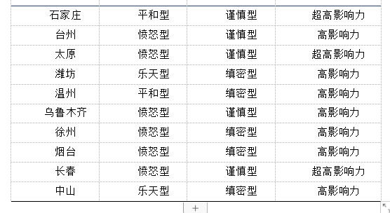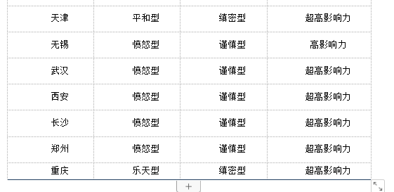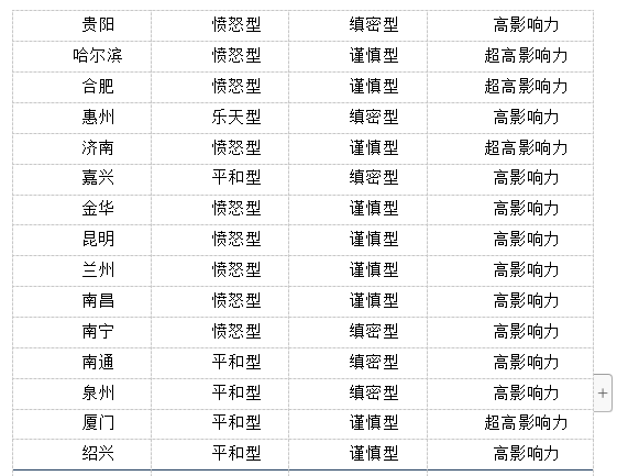 相比于广东其他城市,广州、深圳和珠海的网民积极情绪指数偏低,焦虑和愤怒指数较高,性格上较忧虑。河源和湛江网民的消极情绪指数和悲伤指数较其他城市偏高,说明性格偏感性。基于各城市情绪指数进行聚类,报告大致将抽样城市分为以下四个类型: