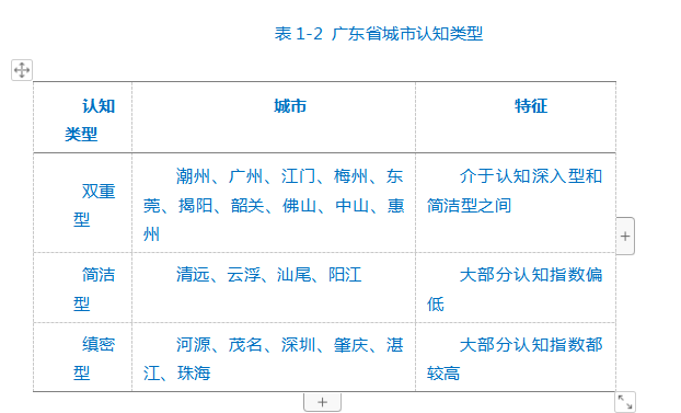 从认知过程维度上看,广东各个城市的认知指数排名均处于全国后列,各分项排名也靠后,说明广东省的网民认知较为简洁。但相对来说,河源、茂名和深圳三所城市在各项认知指数上均处于省内城市排名前列,能在微博上表达自己对事件和观点的看法,并持一定的怀疑或确定态度。根据各城市认知指数可将108座城市大致分为以下三个类型: