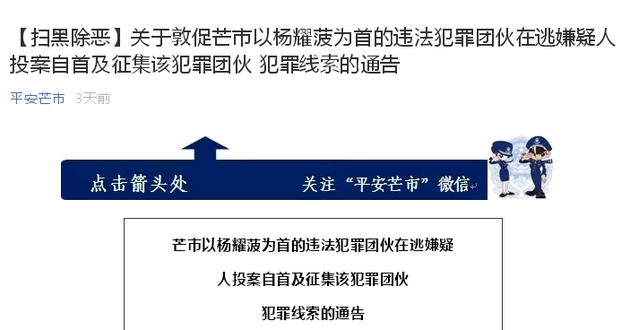 为严厉打击以杨耀菠为首的违法犯罪团伙,2019年4月23日凌晨,芒市公安果断收网,成功摧毁以杨耀菠为首的违法犯罪团伙,杨耀菠等13名犯罪嫌疑人在行动中落网。