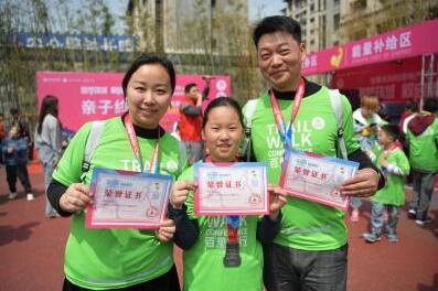走完亲子组全程,一家三口秀奖牌证书。
