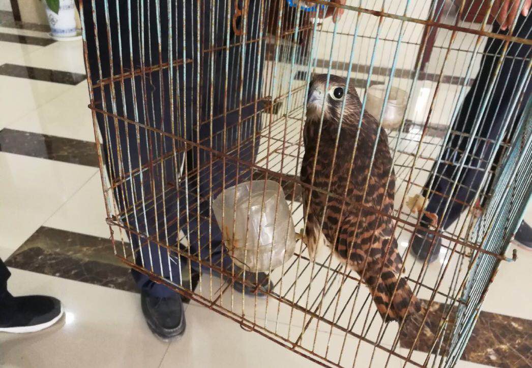 6月2日上午,蚌埠公安朝阳派出所接群众报警称:家里卧室里飞进来一只大鸟。民警立即驱车赶至报警人家里。经了解,张先生买菜回家时,听见卧室内有响动,进去一看发现卧室里飞进来一只大鸟,大鸟目露凶光,吓得张先生赶忙报警求助,经过一番“较量”,民警终于将这只大鸟装进铁笼里。经过确认,大鸟学名紅隼亚成鸟,是国家二级保护动物。目前,已交给森林公安处理。蚌埠新闻网记者 苗成韬