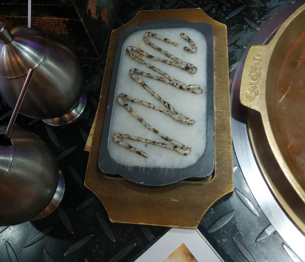 ◥刘先生点菜的菜单上呈现的铁板山药。