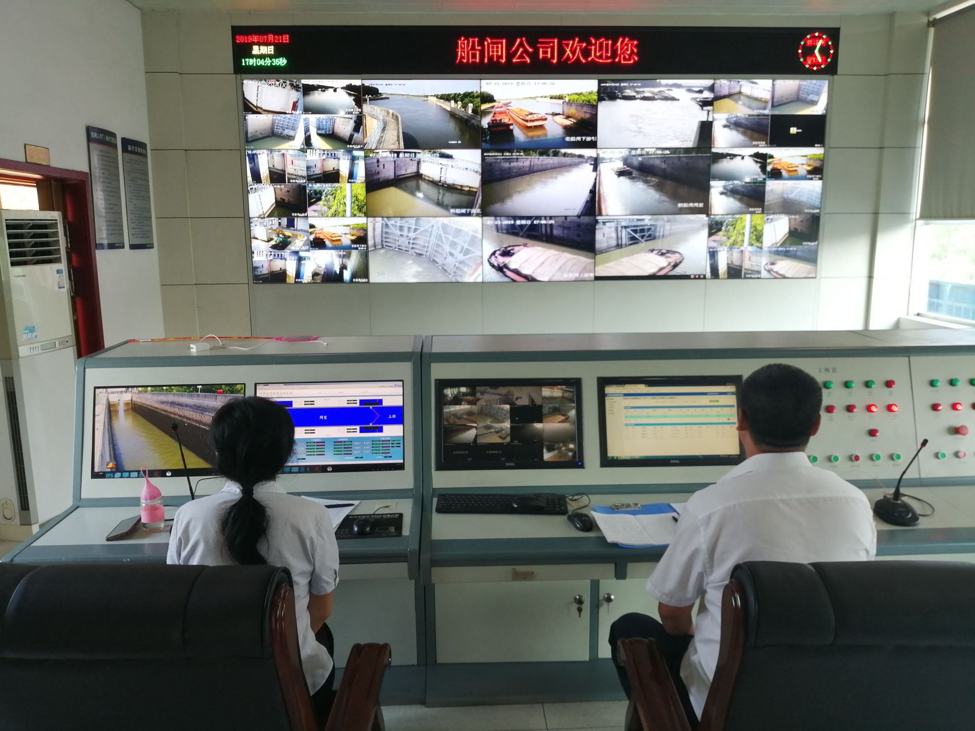 蚌埠闸中控室内,工作人员全天候对蚌埠闸进行监控,确保通行安全。