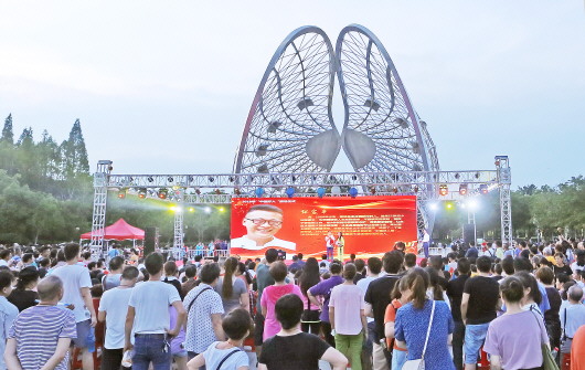 我市在张公山南门广场举办的“身边好人唱——我和我的祖国”歌咏比赛吸引众多市民观看。 田万荣 摄