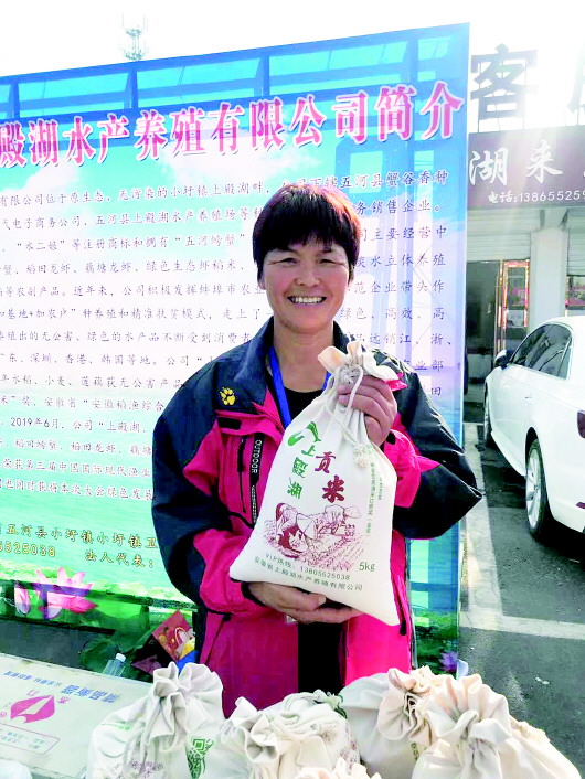 拆网还湖后,除湖泊增殖放流外,该县积极发展沱湖及香涧湖周边稻蟹综合种养模式,政府引导养殖户注册稻米品牌、选择种植口感更好的优质稻,以此促进稻米产业发展,提高养殖户收入。五河“上殿湖”牌蟹田米,在2018年第一次参加全国比赛中获得银奖,在全省比赛中各项指标均为第一,获得金奖,大米供不应求,市场售价达10元/斤。2018年该县被认定为安徽特色农产品(螃蟹)优势区。