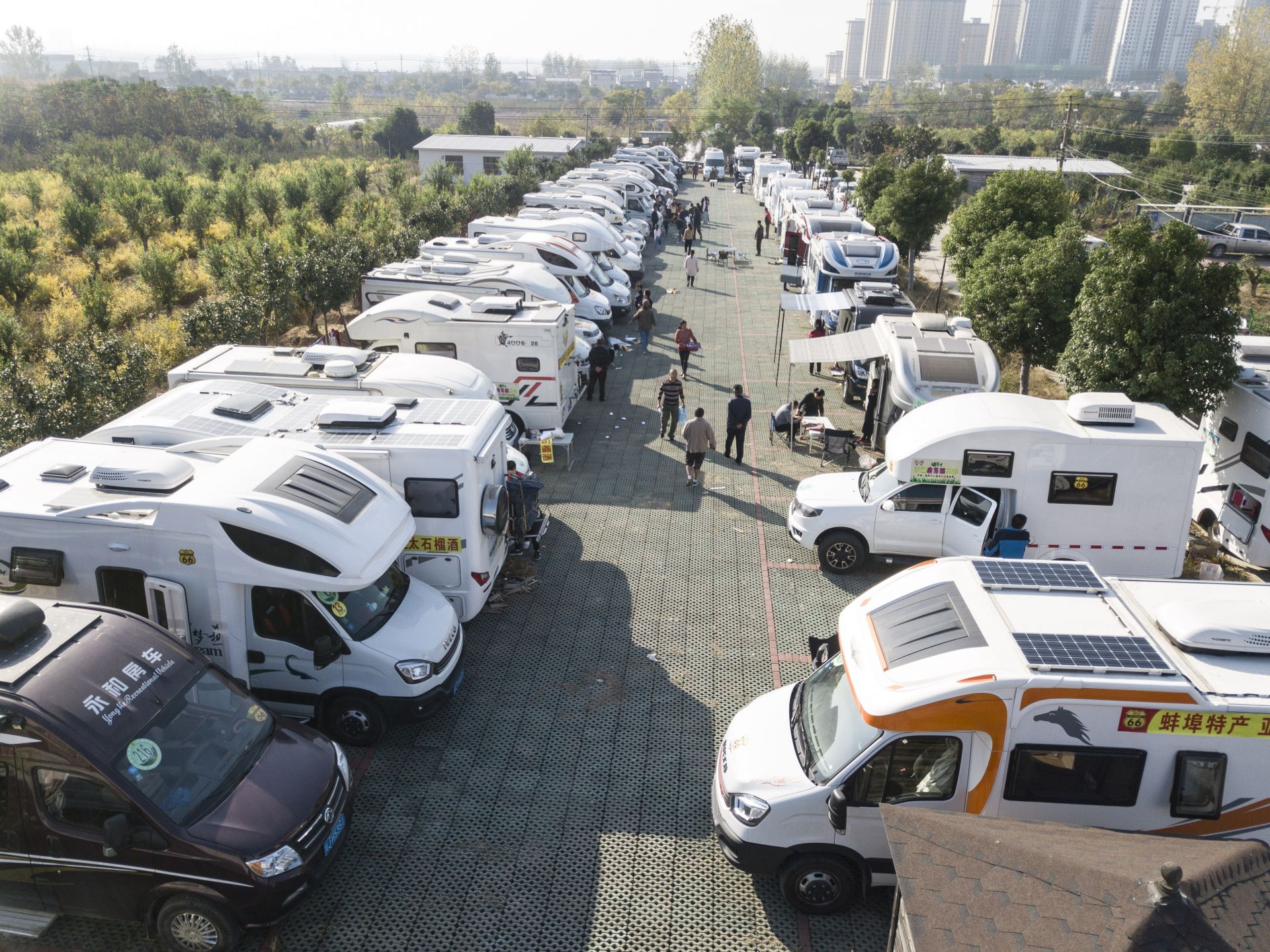 百辆房车停在涂山脚下。