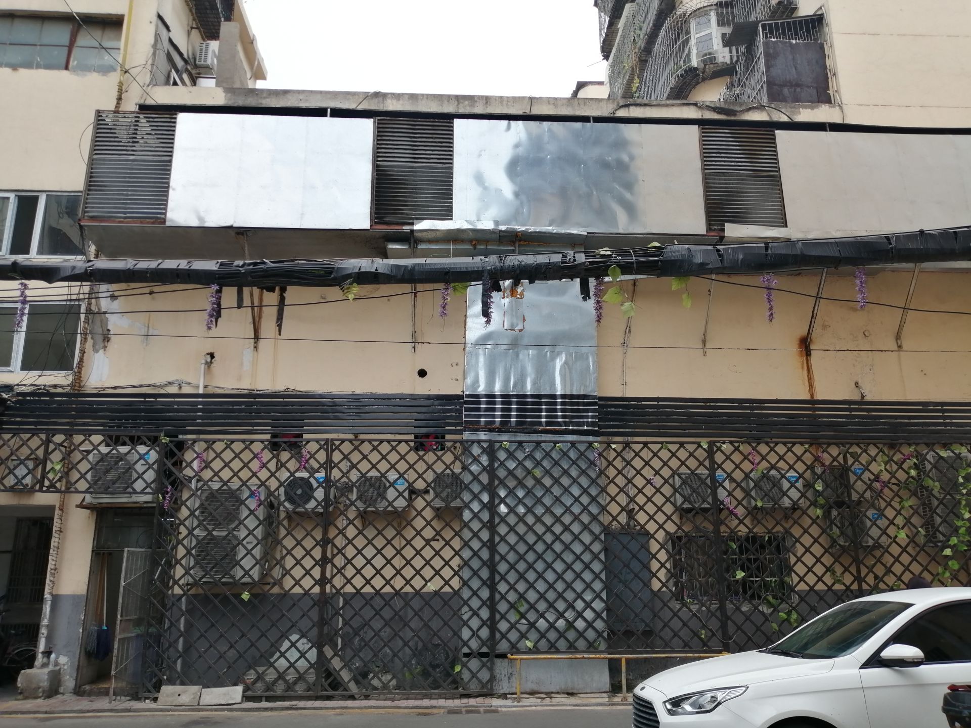 财富广场一号楼楼下遍布排油烟管
