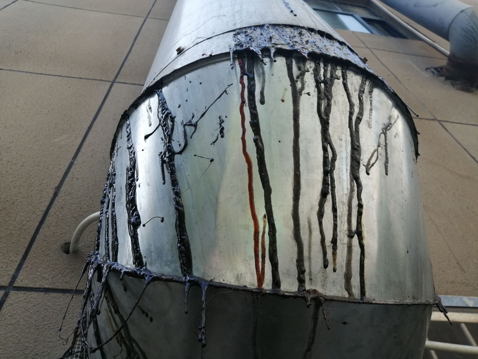 通成紫都鑫苑6号商铺楼后烟管往下滴油。
