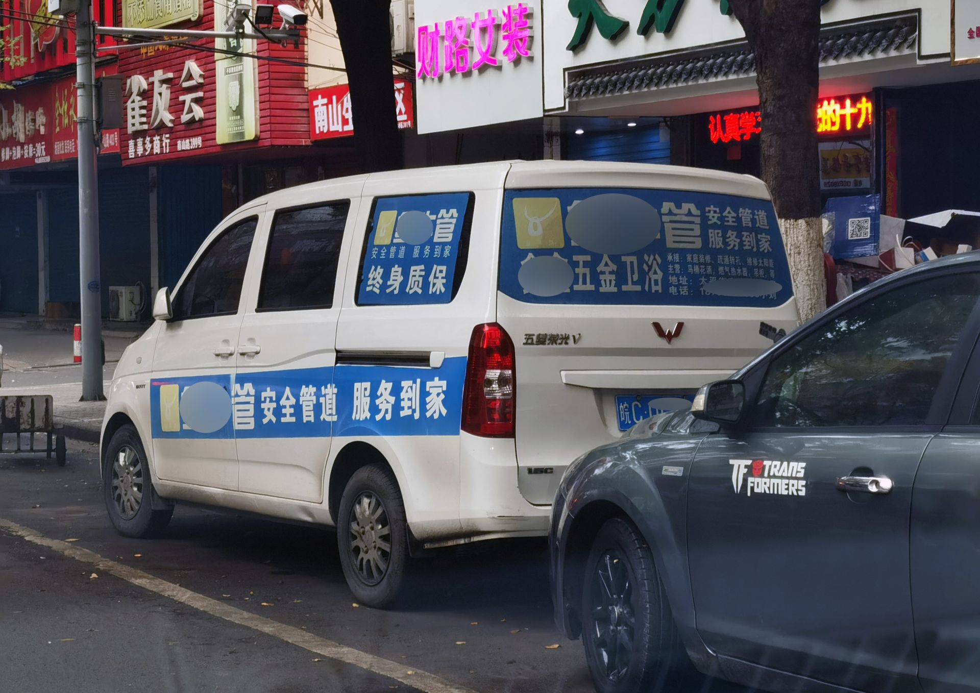 12月16日上午8时许,南山路,一辆“五菱荣光”停在南侧路边停车线内,后车窗及车身上贴着名目详细的广告,在同侧停放的车辆里十分醒目。