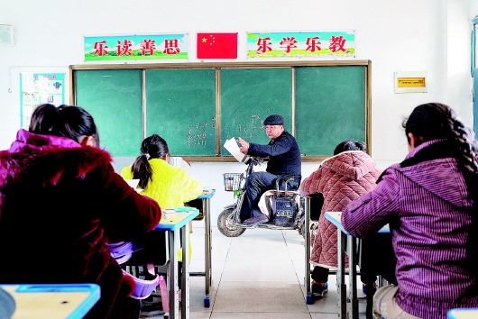 “没有了左腿,我可以选择骑着三轮去教室上课,没有了老师这个光荣的职业,我觉得自己什么都不是,学生就是我的全世界,我把学生看得比生命更重要!”12月11日,记者在珩庄小学见到了郭永先。
