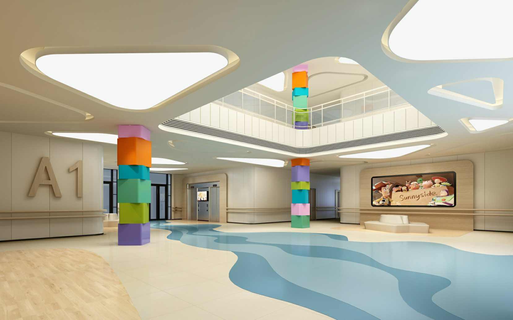 在孤弃儿童生活区、学生生活区,整体设计活泼明快,室内采光充足,可满足目前在院学生生活、学习、活动等多项需求。同时将预设盲文特教班,与市特教中心错位发展。对于轻度低智、可控精神病患者、轻度肢残服务对象等进行针对性技能培训,提升他们适应社会的能力。此外,新院将根据孩子们的特点,精心建造虚拟社会场景,帮助引导孩子更好地融入社会。