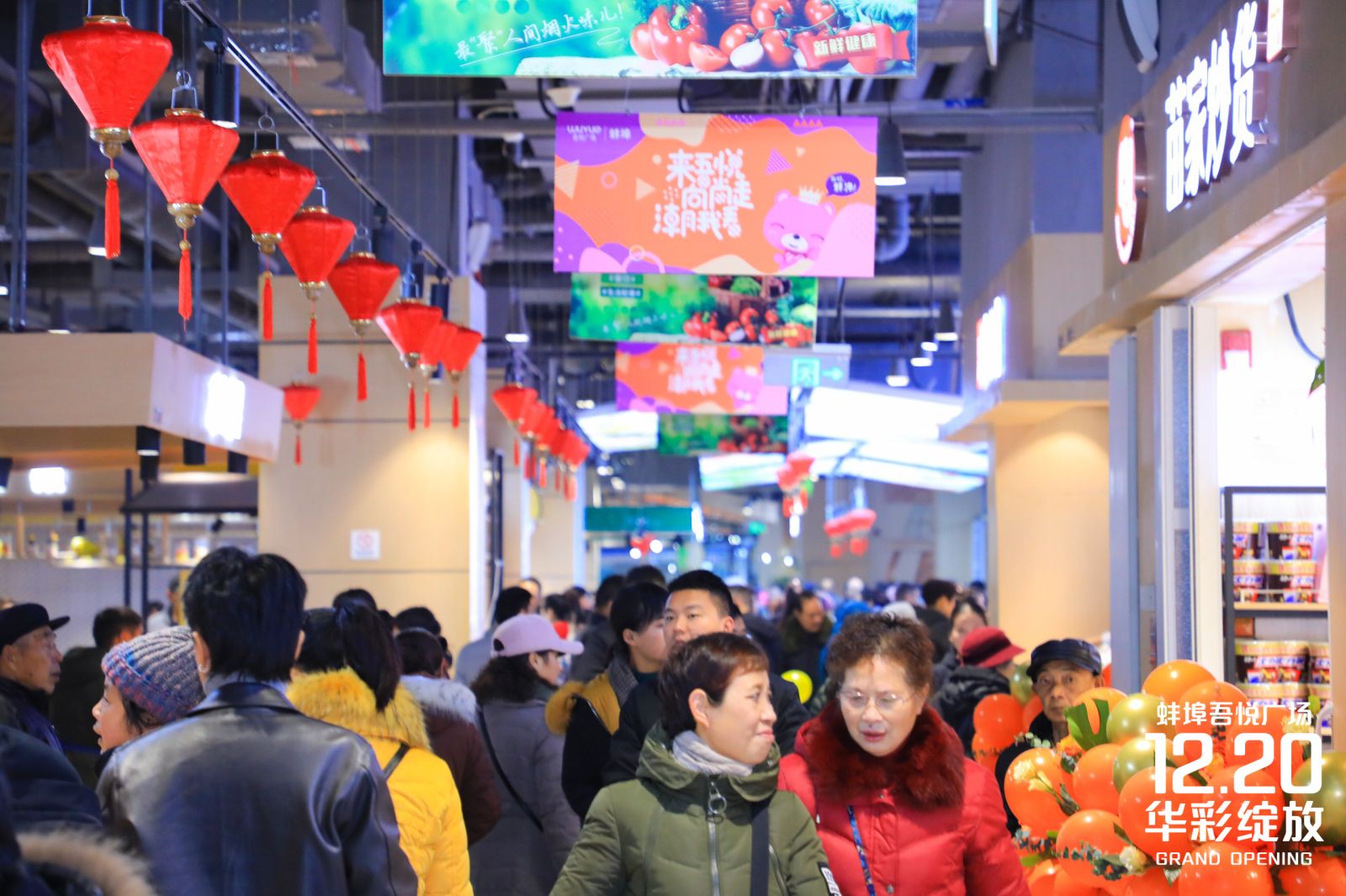 负一楼新城情怀之作全国第二家吾悦菜场,在开业当天即受到了市民的热烈追捧。汇集“生鲜售卖、代客烹饪、配套服务、加工体验、趣味互动”等功能于一体,打造全方位生活化消费场所,蚌埠吾悦菜场融合当地特色,引进非物质文化遗产小吃,打造最聚人间烟火味儿的新型菜场,践行新城“为幸福生活赋能”的商业理念,开业期间吾悦菜场推出多款民生爆品全城最低价,小吃区1元即可享受特色美味。