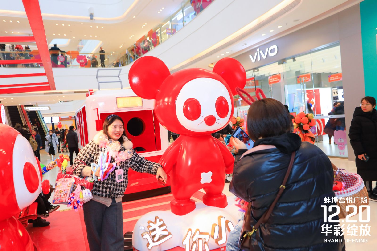 开业当天,象征幸福甜蜜的梦幻萌熊惊喜亮相,引来顾客围观拍照,朋友圈刷起一股粉丝甜蜜风。时尚服装大秀、热辣天使演绎珠城新潮流,萌宠、小丑、cosplay巡游欢乐闹全场;第68届环球小姐中国区大赛,将在下午时间段火热开赛;晚间,1号门主舞台万众期待的明星乐队将登场吾悦潮玩音乐节,一起玩转吾悦。