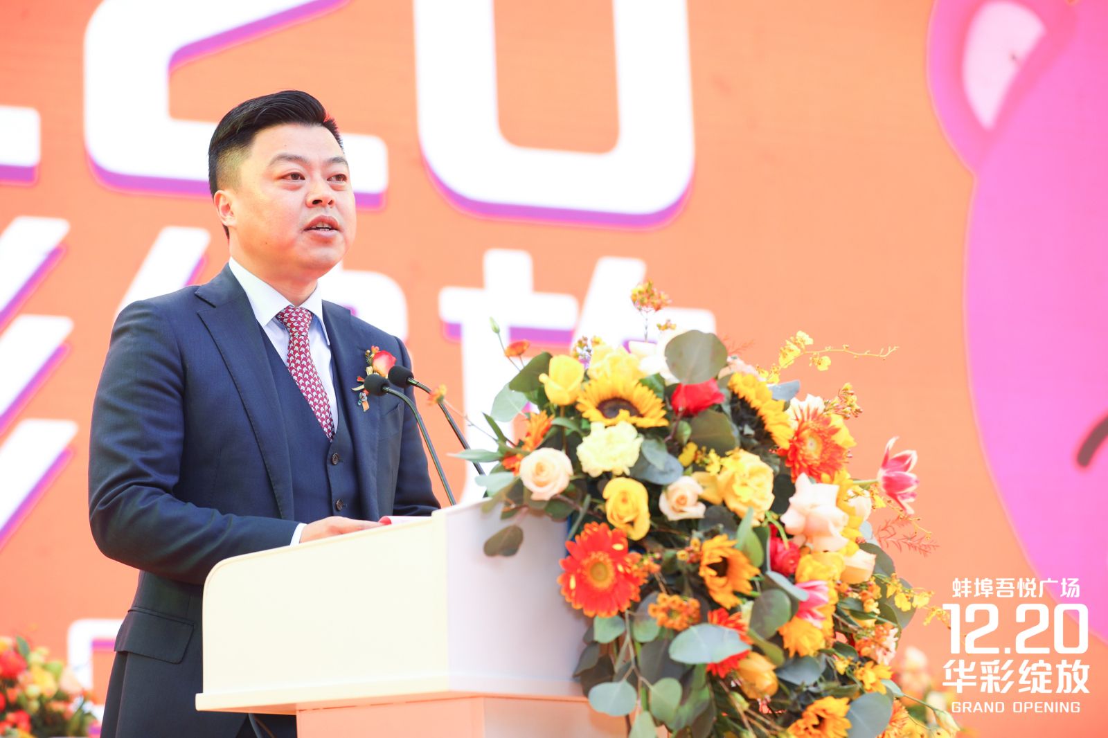 蚌埠吾悦广场总经理刘晨先生在开业庆典上发表致辞,刘晨表示蚌埠吾悦带着“为幸福生活赋能”的企业使命,必将为蚌埠注入更多幸福能量,助力宜居城市发展,让城市迸发新的活力,成为珠城潮流新地标。