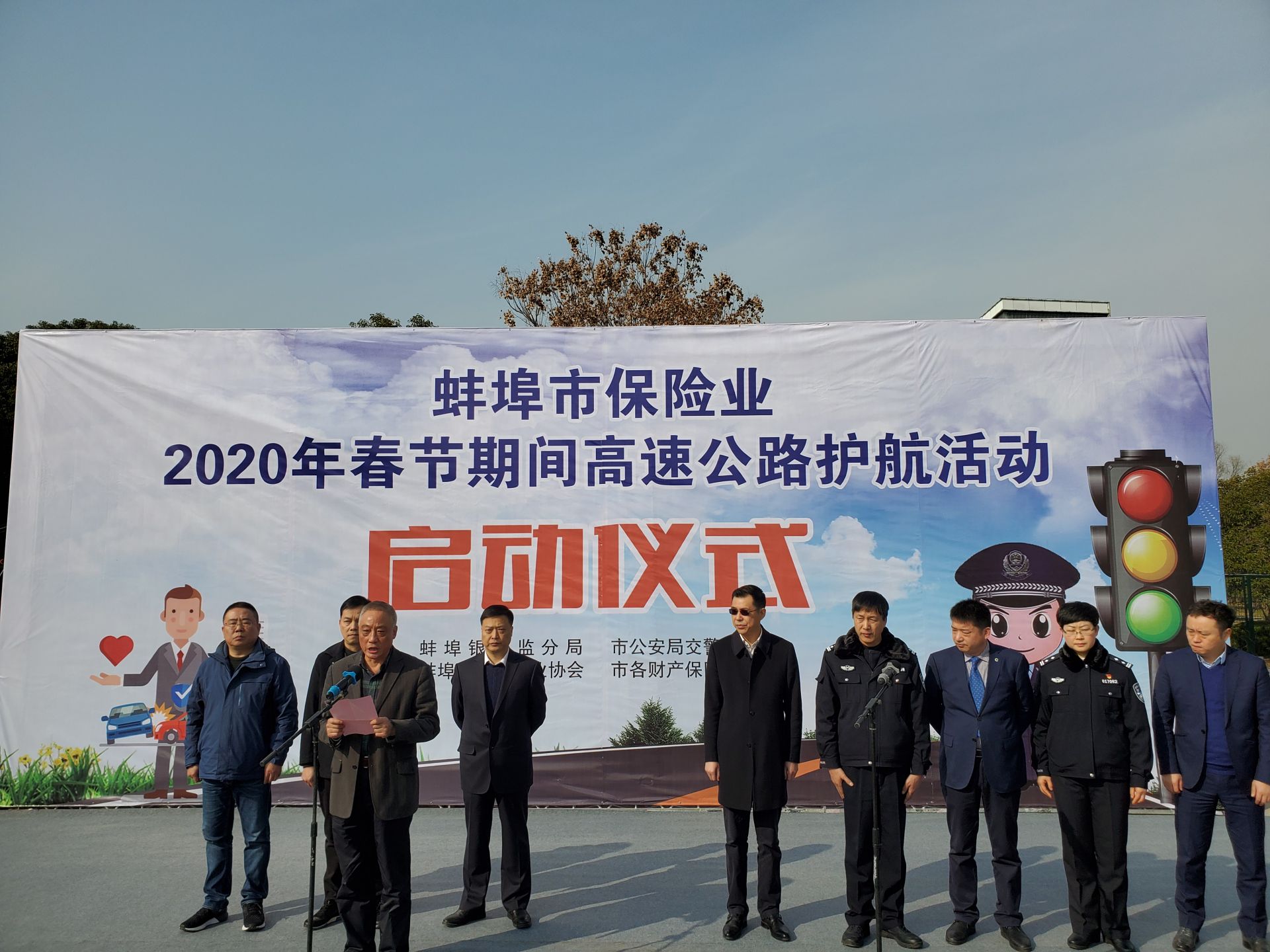 1月20日上午,由蚌埠银保监分局、市公安局交警支队、蚌埠市保险行业协会以及全市各财产保险公司共同组织开展的蚌埠市保险业2020年春节高速公路护航活动全面启动。从1月17日开始至2月1日,我市24家财险公司携手高速交警部门,将为广大车主提供快速定责、快速理赔、道路救援、生活服务等帮助,通过线上线下的创意形式倡导广大车主安全驾驶、平安出行,确保广大人民群众平安回家、团圆过年。