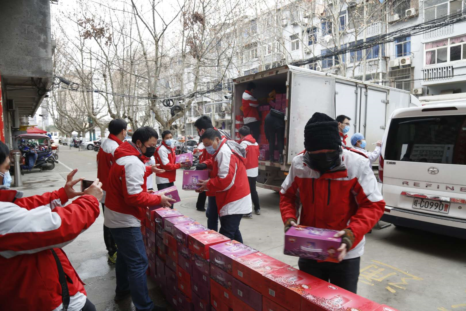 2月19日上午,蚌埠市体彩的爱心业主们分别来到蚌埠医学院第一附属医院和蚌埠市第五人民医院(传染病医院),为医护人员送上爱心物资。