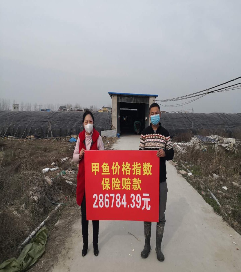 受此次疫情影响,封路防控,养殖饲料及活禽水产运输受阻,导致甲鱼价格下跌及滞销,养殖户经营危困。人保财险蚌埠市分公司积极应对,快速响应,启动疫情期间重大保险理赔案件应急预案,开辟疫情保险理赔绿色通道,迅速完成甲鱼价格指数保险赔案,赔付金额234.69万余元。甲鱼养殖户金玉刚、骆志胜对人保财险公司的快速理赔服务高度赞扬,并赠送锦旗表示感谢。