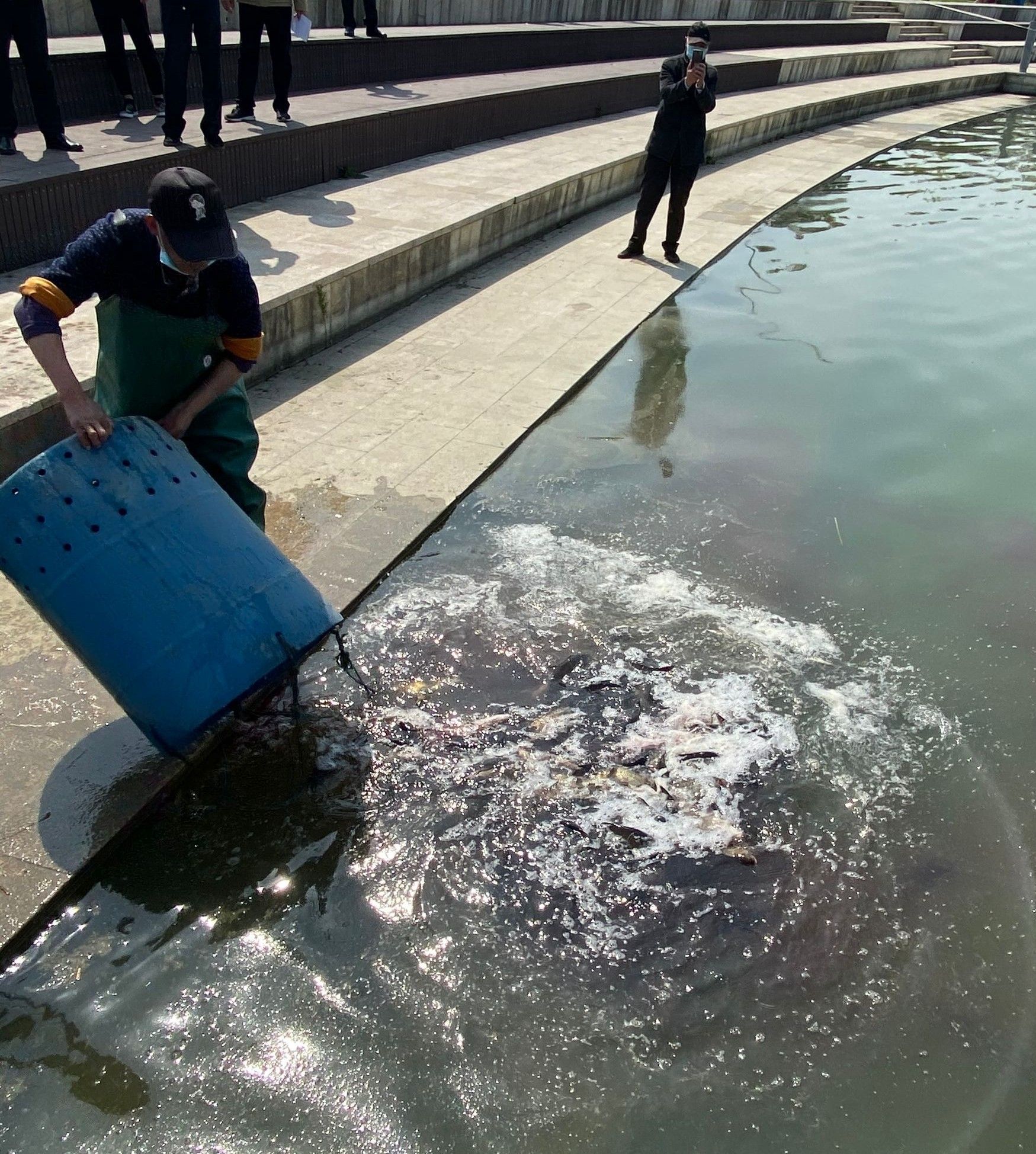 投放鱼苗现场。