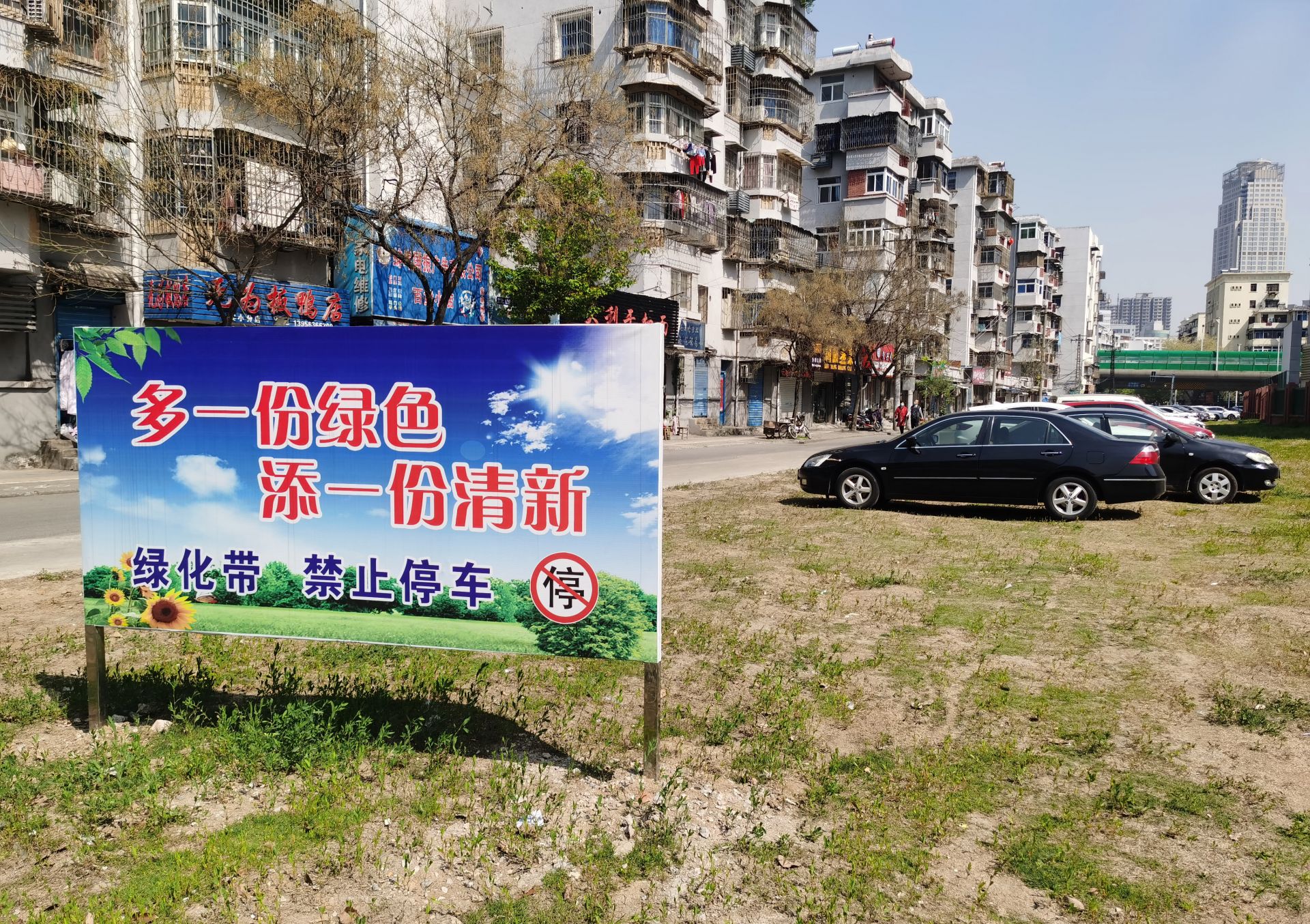 “我住在这里几十年了,平时很喜欢种些花花草草,前段时间这里弄了个绿化带,天天早上一开门就能看到,心里甭提多舒服了。”沿街商户陈琴说,“也就是今年,天天草地上停的都是车,尤其是下雨天,停放的车辆从草地里开出来,把泥带的到处都是,没办法,我儿子还曾专门用水管冲洗过家门口。”她建议,是不是应该设立禁停标志,或者施划专门停车位,这样也可以缓解周边停车难。