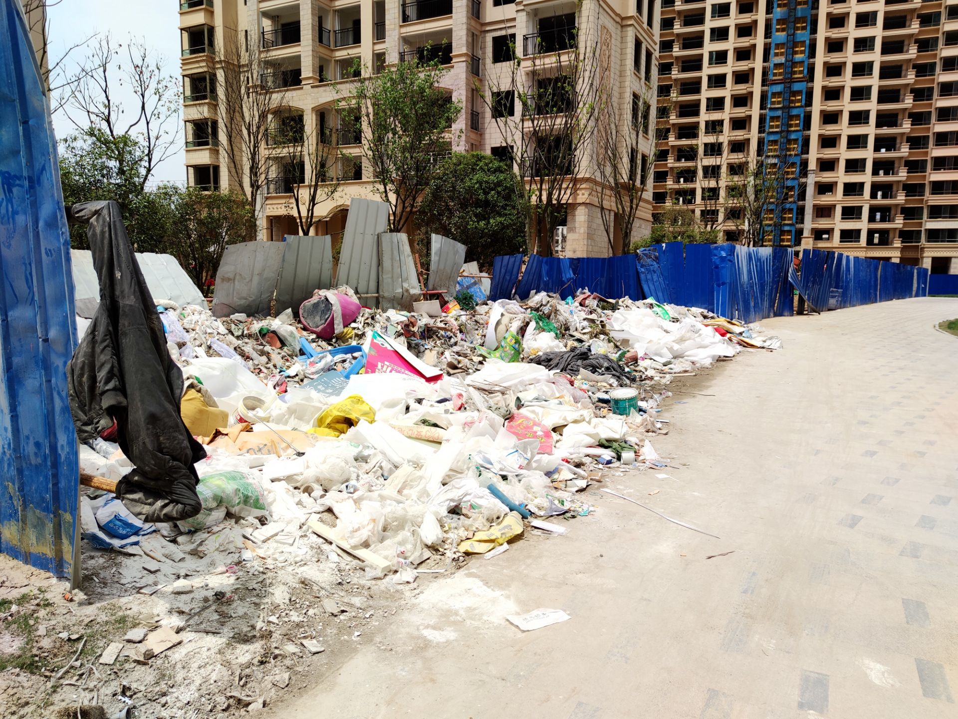 奥园瀚林银座东苑: 垃圾倒在露天地面 铁皮围挡歪歪斜斜