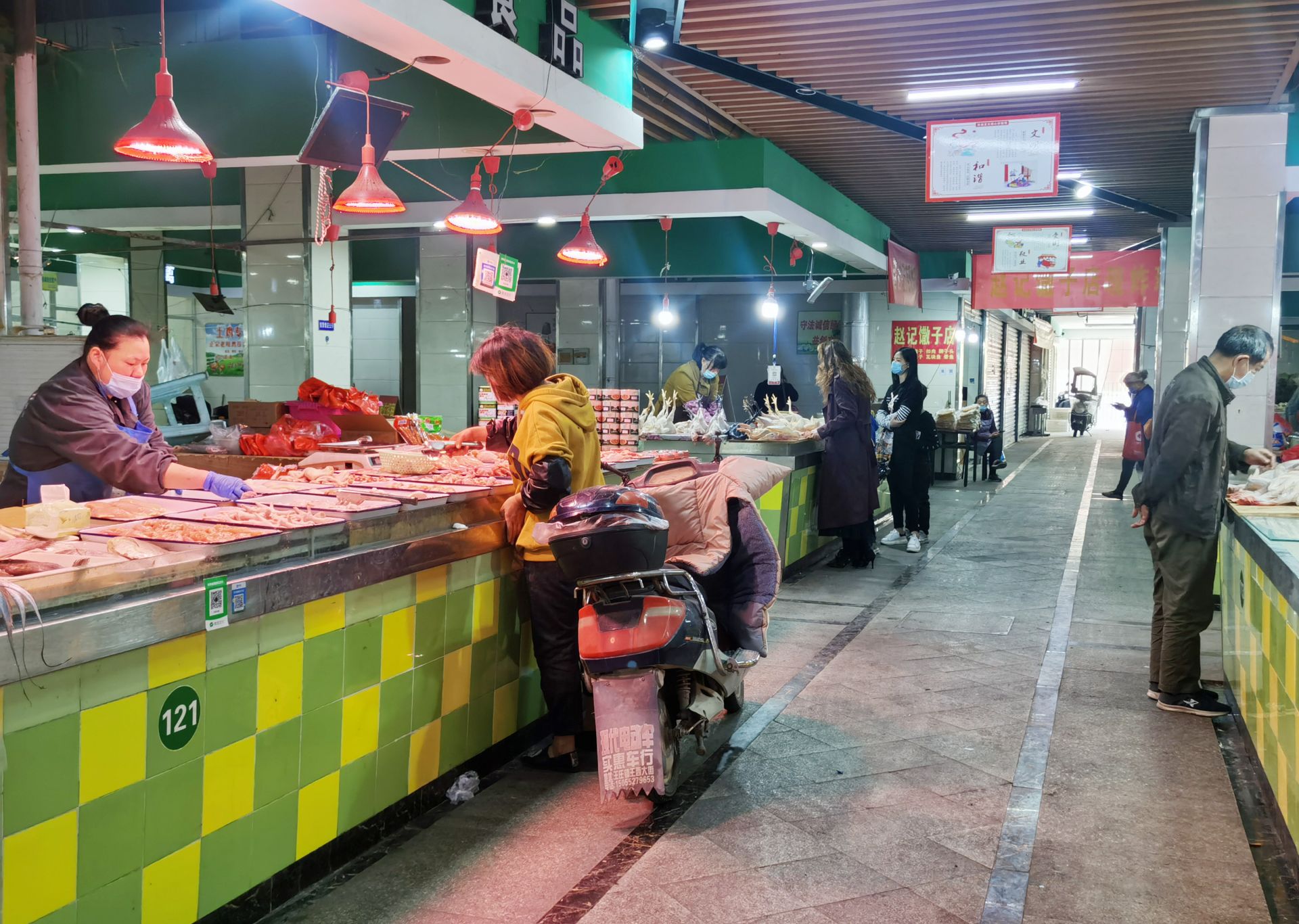 祥和农贸市场,有市民骑电动车进入市场买菜。