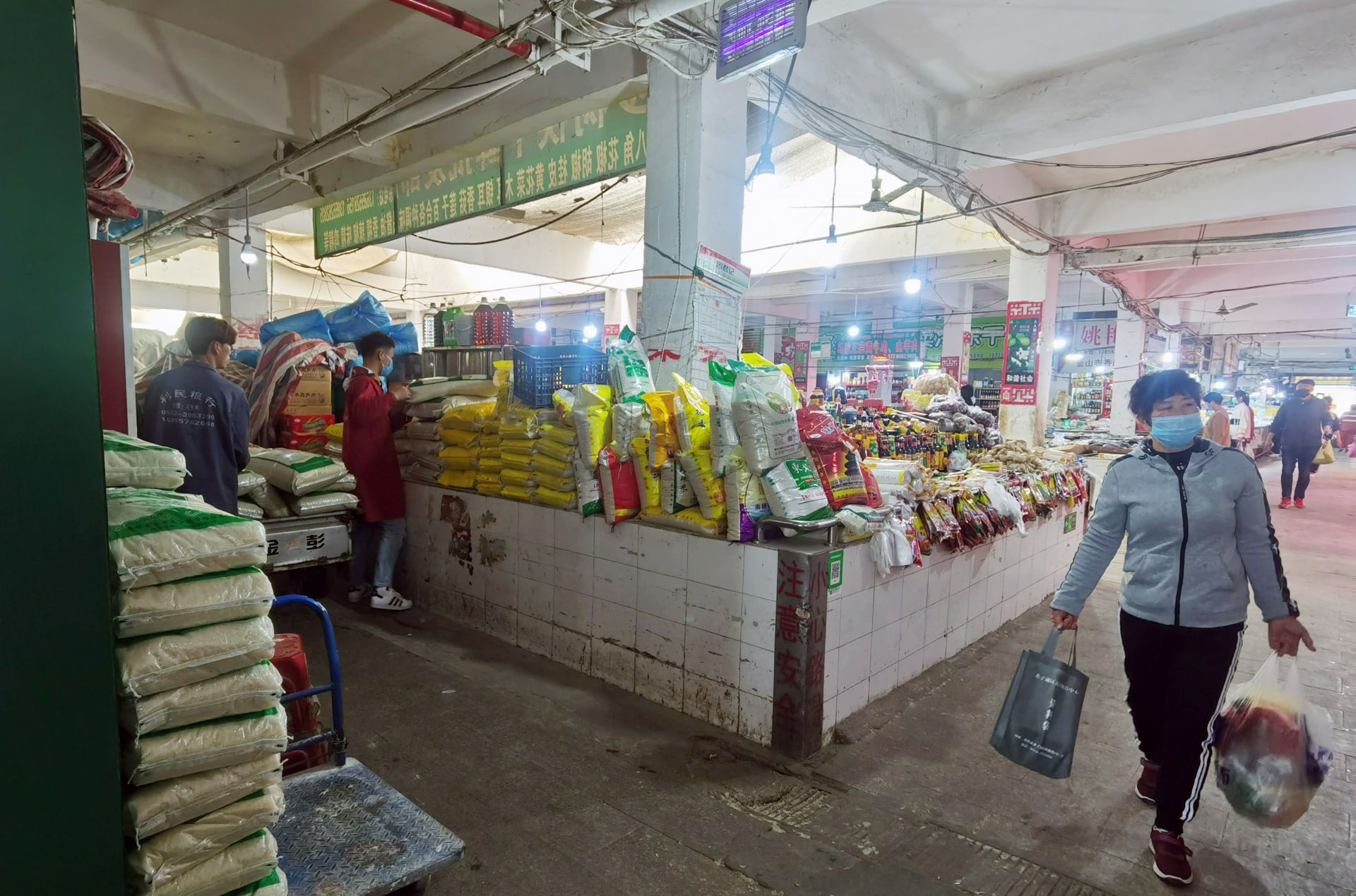 小蚌埠农贸市场,不少摊主将新进的商品堆放在邻近自家店铺的空闲摊位上。