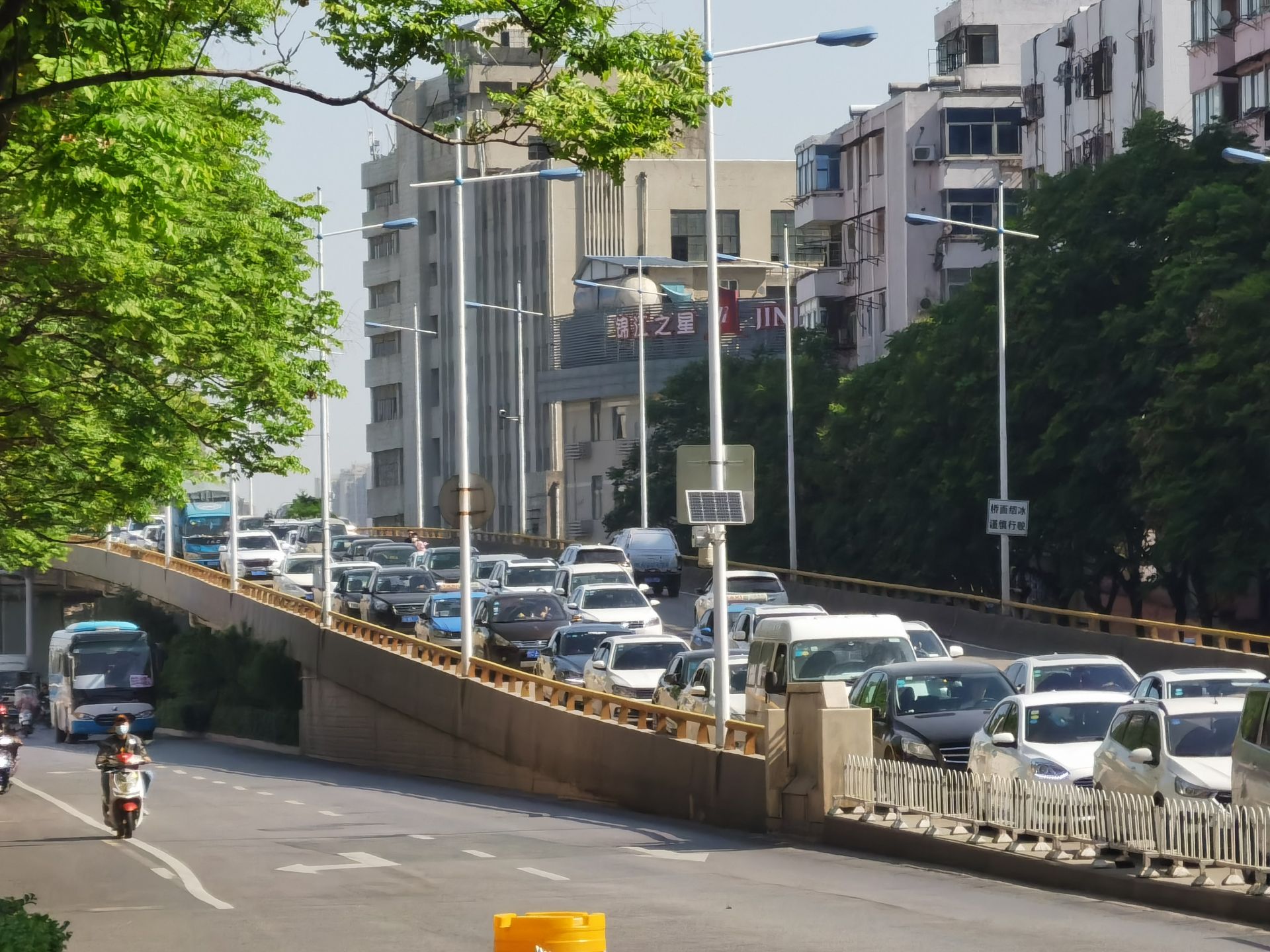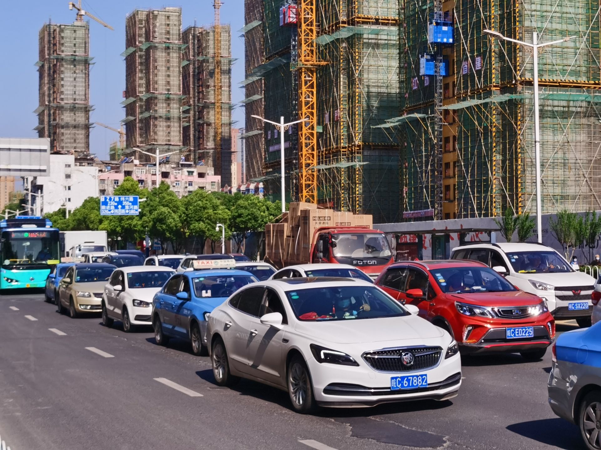 5月18日,市区胜利路、淮河路、朝阳路出现交通拥堵,车流行驶缓慢,给市民出行带来影响。 记者 刘晨