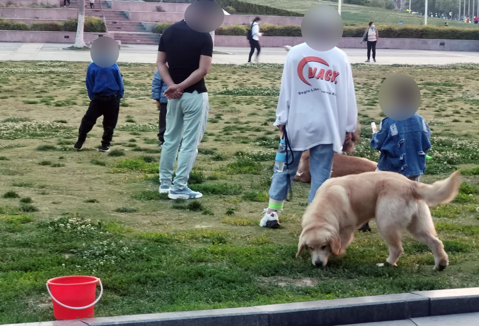 近日,下午5点左右,记者来到淮河文化广场,约有5只狗在“四处奔走”,都没有戴犬牌。这5只狗中,有3只大型犬,其中1只是金毛犬,1只哈士奇,1只边牧,而这3只狗都没有牵绳子。两只小型犬虽然脖子上拴了绳子,可并没有人牵着,任由它们奔跑玩耍,有些在这儿经过的市民只能绕路走过。