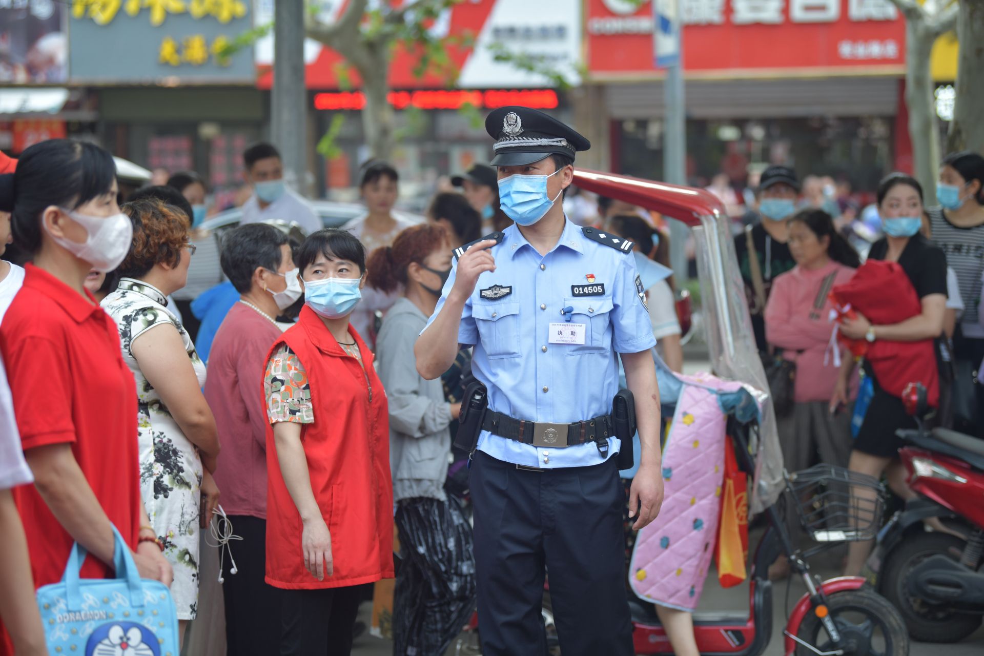 高考第一天上午8点25分,在荆涂学校高考执勤点,怀远县公安局交通管理大队城关交警中队队长姚磊带领民警在学校门口指挥交通。这时,有一名女生面色焦急,跑来向交警求助。她自称是荆涂学校考点考生,赶到考点后才发现自己把《全国统一考试家长及学生注意事项》忘记在家中。而父母均在外务工,家里无人,必须自己回家取。