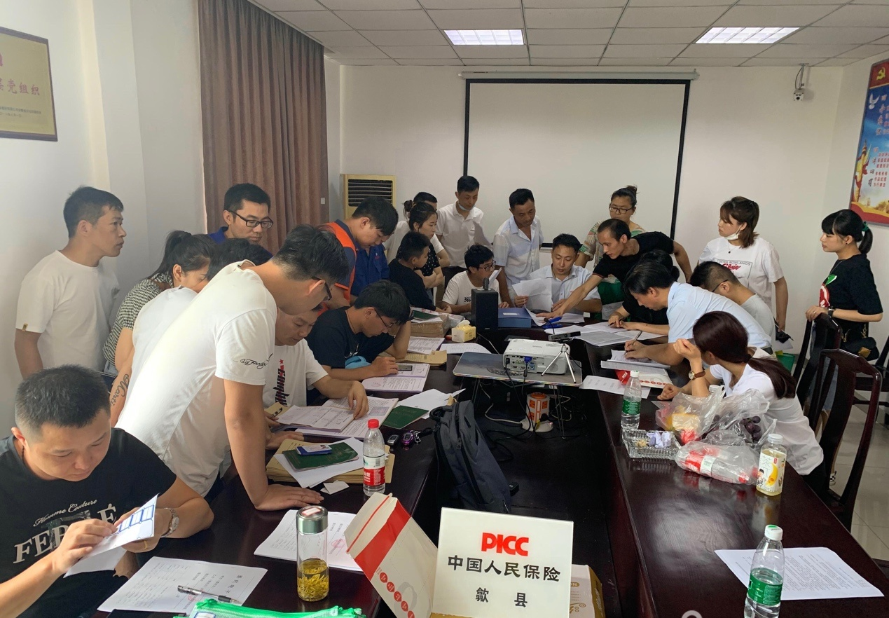 (图为歙县工作组连夜召开灾后理赔推进会议)