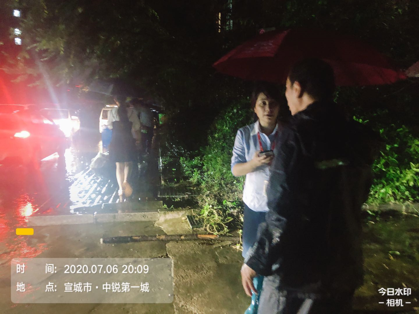 宣城地下车库积水最为严重的几个小区,停放车辆多,转移工作量大,急需人员前往,当晚20时许,陈沁芳主动带人来到这里,排查水淹车辆,不厌其烦的一辆车一辆车的主动联系车主移走车辆,并积极与小区物业取得联系,及时通知其余未联系到的车主。同工作人员在车库入口放置车辆预警提示牌,避免其他车辆受到损失。