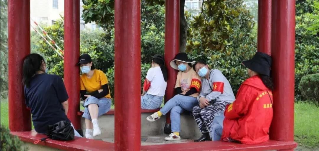 参与防汛值班的巾帼志愿者,见缝插针,在淮河坝上临时午休。