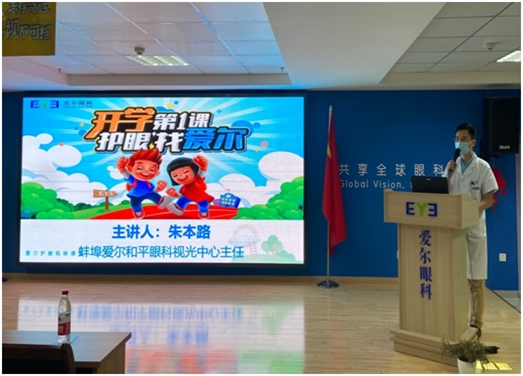 结对共建仪式后, 蚌埠人保财险龙子湖支公司联合党支部与爱尔眼科合作,共同为中环污水处理有限公司的党员及家属开展专题讲座,分别讲解了人人安康增值服务知识和儿童近视保护知识。