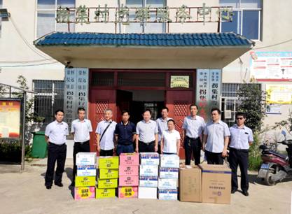入户走访后,全体帮扶责任人来到拐集村村委会,捐赠防暑降温物资,并与扶贫工作负责人展开交流会议。怀远支行的扶贫工作坚持政府主导与社会力量共同参与相结合,智力扶贫与精神扶志相结合,明确扶贫目标,加大帮扶力度,获得群众与政府的认可。