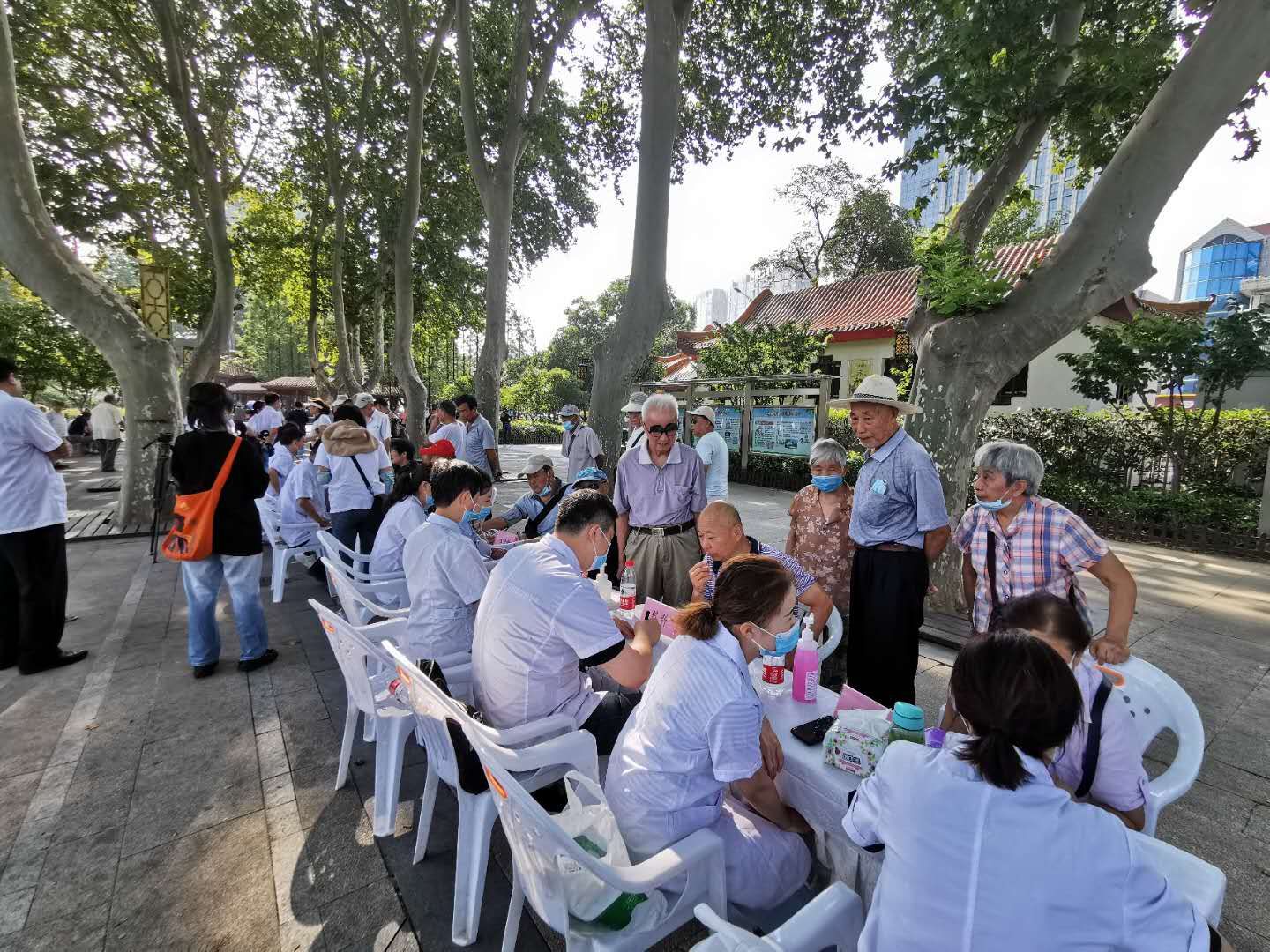 蚌埠新闻网讯(记者 张婷婷 通讯员 窦卫东) 8月19日是第三个中国医师节,市卫生健康委举办庆祝中国医师节系列活动。当天上午,“弘扬抗疫精神 护佑人民健康”大型义诊活动在津浦大塘公园举办。义诊现场,闻讯赶来的群众纷纷在诊台前排起了长队,14家医疗机构28个特色专科的高年资医生现场接诊,为群众答疑解惑。